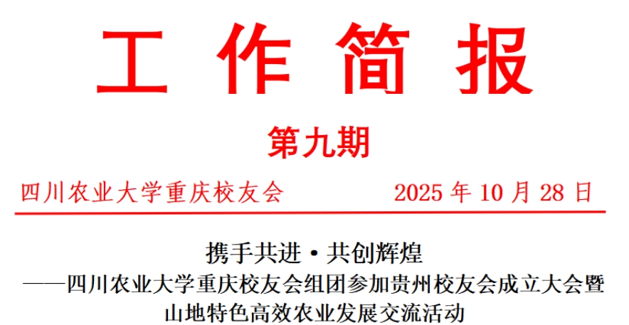 【工作简报】携手共进·共创辉煌——四川农业大学重庆校友会组团参加贵州校友会成立大会暨山地特色高效农业发展交流活动2025-10-29 14:13:41 来源:四川农业大学重庆校友会 浏览:142次
