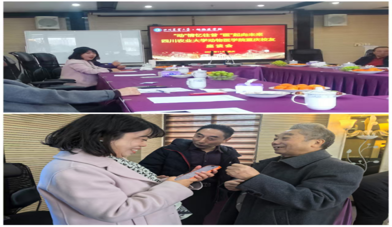 座谈会由动物医学院党委侯维书记主持。动物医学院陈舜院长、老校长文心田、学院原党委贾仁勇书记、钟妮娜老师、宋三多副书记、苗宇老师等一行七人专程赴渝,与戴祥文(59级,85岁)、文传良(63级)、王健(77级)、孟怀望(79级)等近二十位在渝校友代表欢聚一堂,共叙情谊,共话发展。 会议伊始,重庆校友会会长陈登明介绍了校友会的筹建与发展概况,展现了重庆校友组织的活力。侯维书记向与会校友介绍了学院当前的发展规模、学科建设、人才培养及新校区建设等基本情况,并表达了学院对广大重庆校友的深切挂念。贾仁勇书记深情回顾了学院的发展历程。陈舜院长通过图文并茂的展示,系统介绍了四川农业大学及动物医学院的辉煌历程、现状与未来规划,令校友们深感自豪。