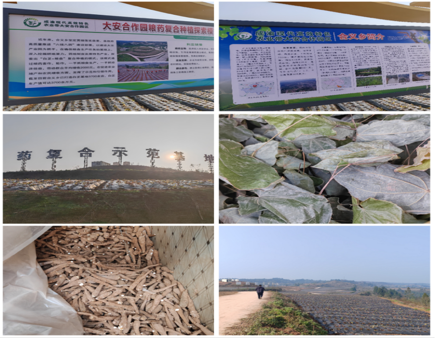 二、园区概况与模式特点 大安合作园区是川渝毗邻地区协同发展的示范项目,覆盖四川省安岳县合义乡与重庆市大足区相关区域。园区以“政府引导、企业主体、农民参与”为机制,逐步形成“粮经饲统筹、种养加一体、农文旅融合”的发展格局。 调研组重点考察了“白芷+粮食”复合种植模式。该模式通过粮药套作、轮作,在稳定粮食生产的基础上,引入白芷等中药材,提升土地综合效益。目前该模式已推广3700余亩,年产值约3700万元,带动农户年均增收2000元左右,体现出良好的示范效应。此外,调研组还就林下中药材种植模式与相关专家进行了深入探讨。