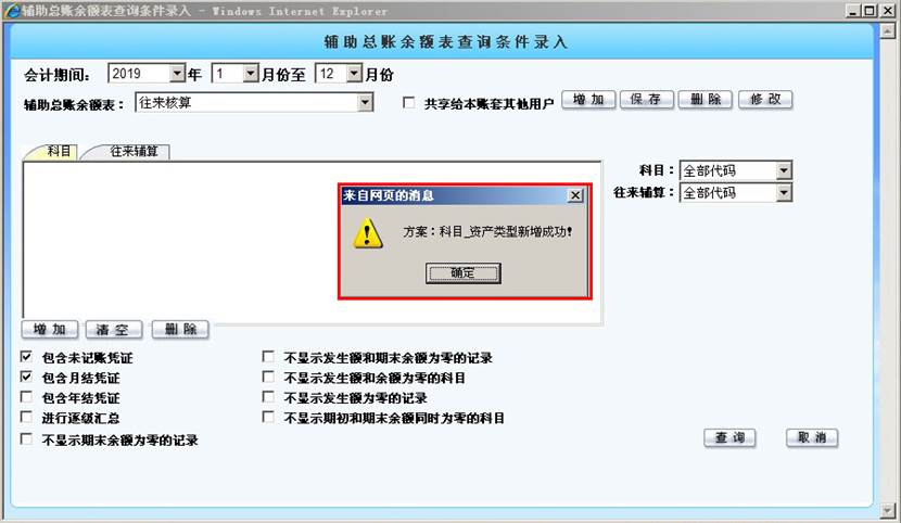 注意:以下皆为演示数据,实际操作以实际操作为准 现我们系统根据标准经济业务事项,按照政府会计制度13类差异项在凭证中自动补录这13类差异事项,自动补录的差异项可取消,系统自动补录的差异项大家一定要去核对,由于我们各个单位在编制凭证时有差异,系统自动补录的差异项不一定完全准确,请大家一定要核对 操作如下: 1. 账务处理系统 /定期处理/补充登记差异项 2. 选择凭证日期,在未登记凭证选项卡,勾选所有凭证,选择全部差异事项,点击批量登记,待批量登记完成即可在已登记凭证选项卡查看 3. 所有凭证登记完差异后在账务处理系统 /结余与盈余差异项/差异项明细表查询明细 4. 修改有误差异项 选中对应有误差异项凭证,双击打开凭证,点击差异项,选择编辑,更改差异项后点击其他空白处,点击保存即可完成更新 1. 往来辅助核算 往来辅助核算请大家一定要按照我们给大家统一设置往来辅助核算类别,不然后面我们统一为大家预置的附注报表不能自动生成数据,附注报表数据需要单位自己手工录入 2. 拨款种类辅助核算 拨款种类由于年初在财政拨款结转结余科目漏掉了,年底有财政拨款预算收入支出表,这张报表是按照一般公共预算和政府性基金预算设置,因此如果这两个科目没有设置拨款种类辅助时就不能使用我们预置的报表自动取数 今年是第一年实行政府会计制度,在进行年底结转时请大家一定要按照政府会计制度要求,按照对应的先后顺序进行结转,系统在预置结转方案时默认都是严格按照政府会计制度执行后的操作,请注意我们给大家编写了一个先后顺序的,有先后顺序的一定要前一结转完成后凭证记账后才能进行下一个结转 1. 科目账 科目账分为财务会计和预算会计科目账,注意非政府会计制度的账套还是只有账务会计科目账,没有预算会计科目 1.1财务会计科目账 余额表 点击账务处理系统 /财务会计科目账/余额表,选择对应会计期间即可查询出所有数据 明细账表 明细账表的查询方法与余额表查询的方法一样,不再重复 1.2预算会计科目账表的查询和财务会计的账表查询相同,不再重复叙述 2. 辅助账 2.1财务会计辅助账 点击账务处理系统 /财务会计辅助总账余额表/点击增加,增加一个查询方案(注意增加查询名称以查询什么就叫什么名字,方便直观查看),以科目+往来和科目+资产类型为例子,注意此处会计辅助余额表只能查询1-5字开头的科目,预算会计科目这里是不能查询的,增加好方案后点击确定 科目+往来余额表 点击查询即可显示结果 科目+资产类型余额表 点击增加,勾选科目和资产类型,录入方案名称为科目+资产类型 点击新增成功确定后即完成方案设置,接下来就可以直接查询数据 2.2预算会计辅助账 预算会计辅助账设置查询方案和财务会计辅助设置相同,设置方案不再复述,以科目+部门经济分类和科目+项目为例子,注意此处预算会计辅助账只能查询到6-8开头的科目,财务会计辅助账不能在这里查询 科目+部门经济分类 科目+项目 3. 辅助分析表 辅助分析表主要用于决算报表按照横向经济分类纵向功能,筛选条件为会计科目,以这个查询方法为例子,其他决算报表查询数据方法相同 账务处理系统 /预算会计辅助账/辅助分析表 录入方案名称 增加查询选项 最后点南查询即可显示结果 预算会计明细账表查询方法去预算会计余额表查询相同,不再重复叙述 点击电子报表系统/报表生成,注意选择期间,除了月报还有年报以及政府会计制度规定的报表附注报表,请大家一定要按照政府会计制度要求编制完整的财务报表 以年报生成一般公共预算财政拨款预算收入支出表为例子,选中对应报表,点击修改,取数完成即可显示所有数据