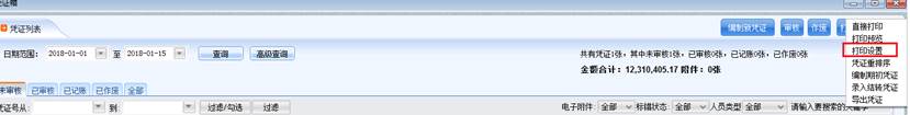 进入路径:【账务处理系统】→【凭证处理】→【凭证箱】→【打印设置】 如图: