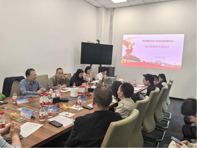中共重庆市中小企业科技创新协会党支部 2025年党支部活动成功举办 2025年4月15日下午,重庆市中小企业科技创新协会第三届六次理事会暨轮值会长会议在盛泰光电科技股份有限公司会议室召开。参加会议的有双桥经开区创新服务中心李莹科长、党支部书记付利川、协会副会长、理事,协会全体党员共20人,会议由协会秘书长熊海云主持。