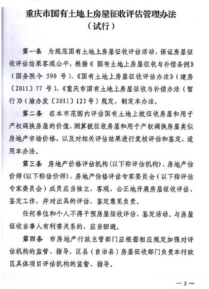 重庆市国有地地房屋征收评估管理办法(试行)的通知