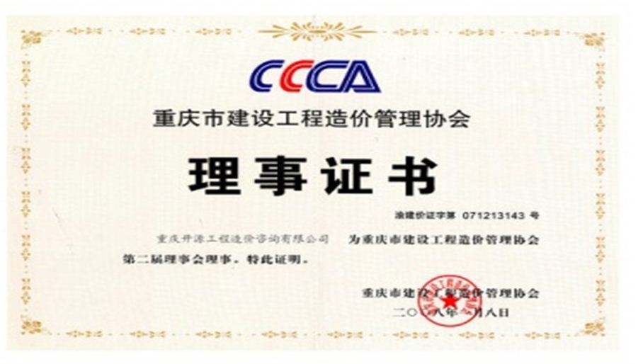 您当前位置:网站首页 >> 人员与资质 >> 荣誉 >> 先进单位 >> 重庆市建设工程造价管理协会理事证书