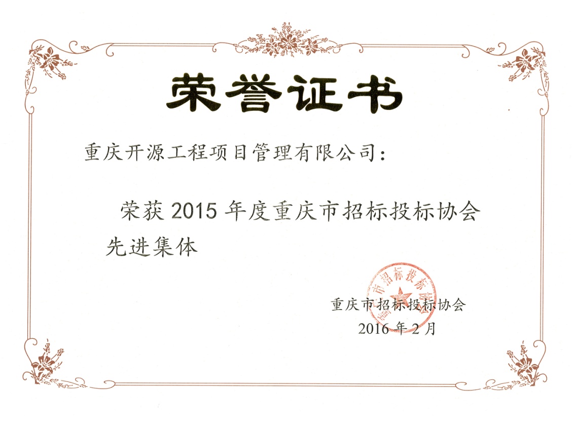 您当前位置:网站首页 >> 人员与资质 >> 荣誉 >> 先进单位 >> 庆市招标投标协会2015年度先进单位