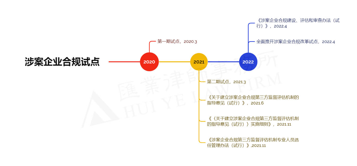 《办法》的具体目的是落实最高检等九部门在2020年6月发布的《关于建立涉案企业合规第三方监督评估机制的指导意见(试行)》及其实施细则,依法推进企业合规改革试点工作,规范第三方监督评估机制相关工作有序开展。如下图所示,这体现了最高检在推进涉案企业合规试点的连贯性。