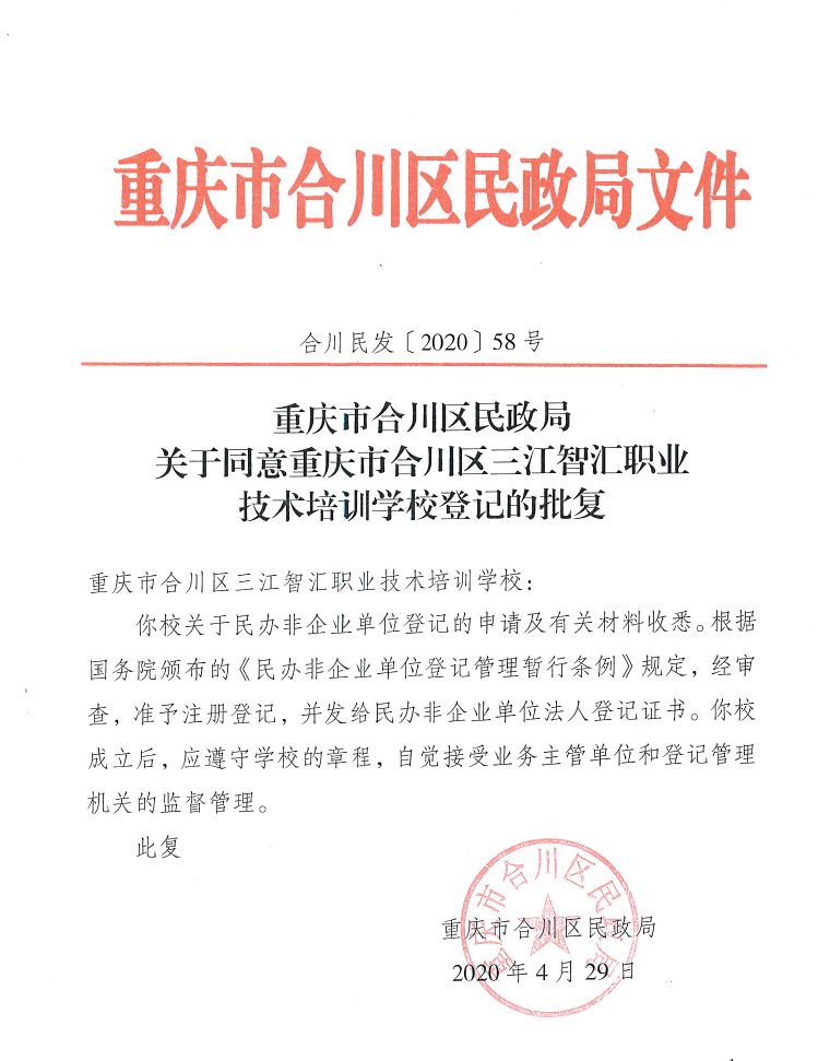 重庆市合川区三江智汇职业技术培训学校    电话:023-42838333 地址: 重庆市合川区南办处希尔安大道1108号1幢2-2-2