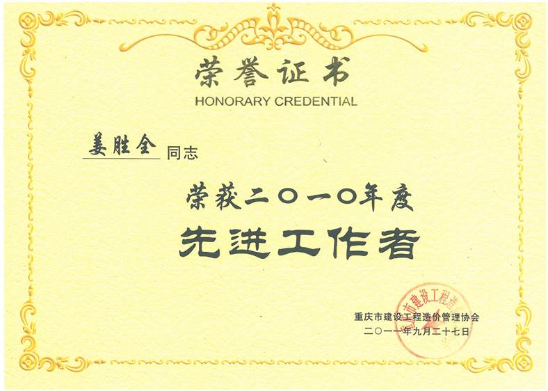 您当前位置:网站首页 >> 关于我们 >> 荣誉 >> 先进个人 >> 重庆市建设工程造价管理协会先进个人
