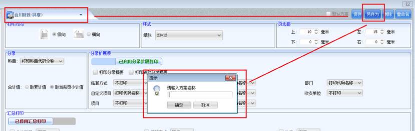 在【打印设置】中,点击左上角选择‘合川财政(共享)’,如图: