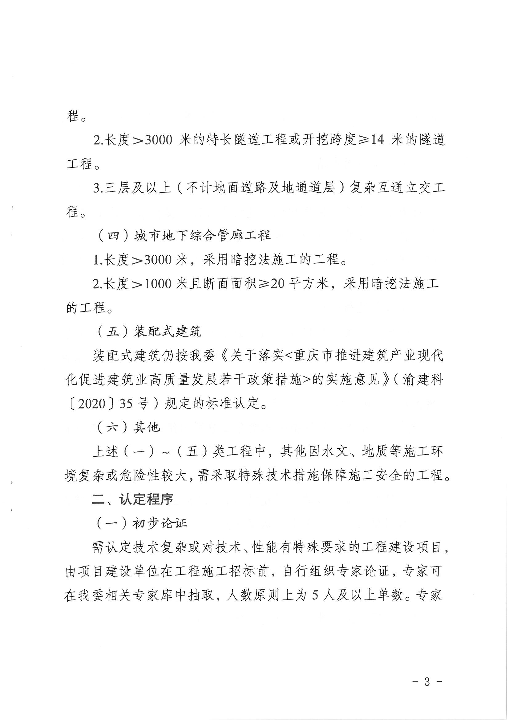 您当前位置:网站首页 >> 政策法规 >> 省市级 >> 重庆市住房和城乡建设委员会关于房屋建筑和市政基础设施工程技术复杂认定标准和程序的通知 渝建发〔2021〕3号